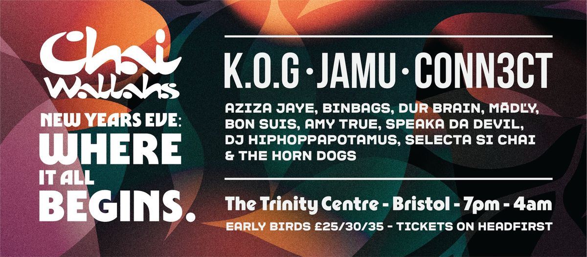 Join the Chai Wallahs family and a host of their favourite artists for a packed New Year’s Eve night of incredible live music, DJ culture and new beginnings—this includes “Ghana’s finest” Kweku Sackey aka K.O.G (Kweku of Ghana), a cleverly constructed hip-hop showcase from around the world with JAMU, a monumental 90-minute show from CONN3CT, the happy hippo himself DJ Hiphoppapotamus, and eclectic Selectah SiChai. You can learn more here.